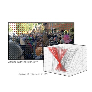 By leveraging a novel generalization of the Hough Transform on optical flow vectors, we present an approach to estimating camera rotation in crowded, real-world scenes from handheld monocular video that outcompetes the SOTA on speed and accuracy.