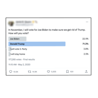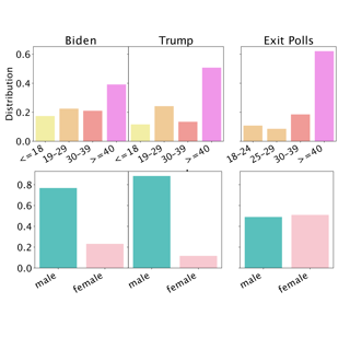 Leveraging vision-language inference over Twitter profiles, we correct social poll respondent biases on Twitter (now X) and produce useful social polling signals of the 2020 U.S Presidental Election. This work won the Best Paper Finalist Award at ICWSM and our has gone on to outcompete mainstream polling averages for the 2024 U.S Presidential Election prediction.